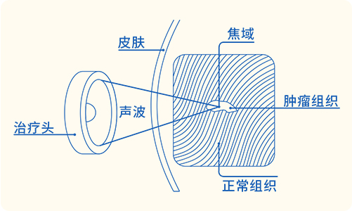 高强度超声聚焦肿瘤治疗系统是一种无创局部性治疗方法,其治疗原理是:把超声波作为治疗源,利用其良好的方向性、组织穿透性以及可聚焦性扥物理特点,定位到病灶处,将体外低能量超声波聚焦在体内病灶处,通过焦点区高强度超声波产生热效应、机械效应、空化效应、声化效应消融肿瘤。几种效应的协同作用,杀死靶区内的肿瘤细胞,不损伤靶区外组织。